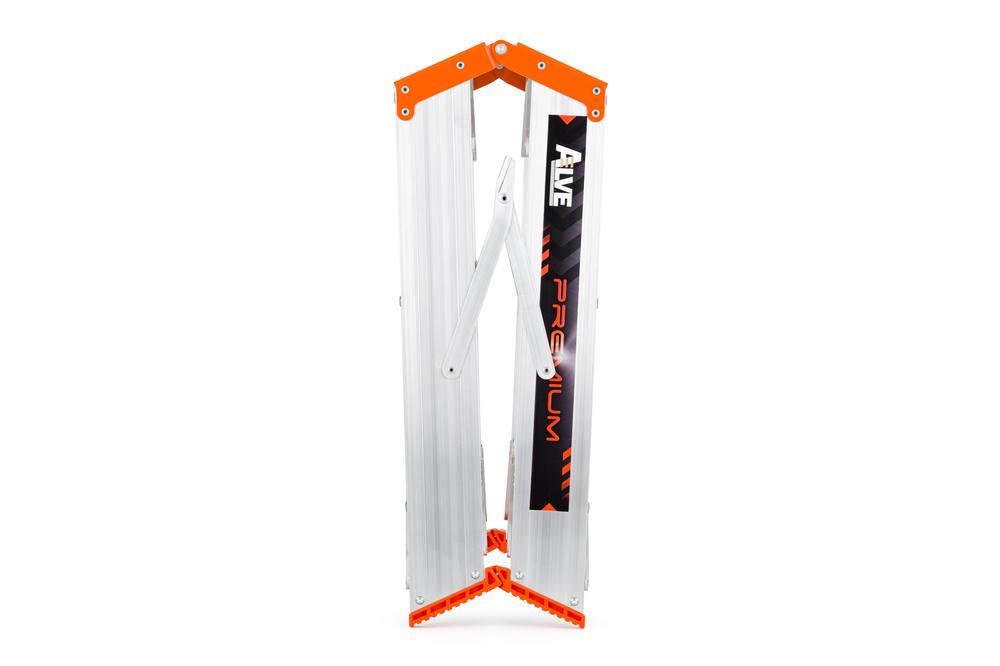 "HEAVY DUTY" oboustranné hliníkové schůdky PREMIUM se zámkem, vyrobené dle normy EN14183. Zámek namísto popruhu zabraňuje samovolnému zavření schůdku při jeho přemístění/pohybu. Počet nášlapů 2x1 až 2x5, max. výška 0,22 až 0,99 m a šířka 449 až 537 mm.